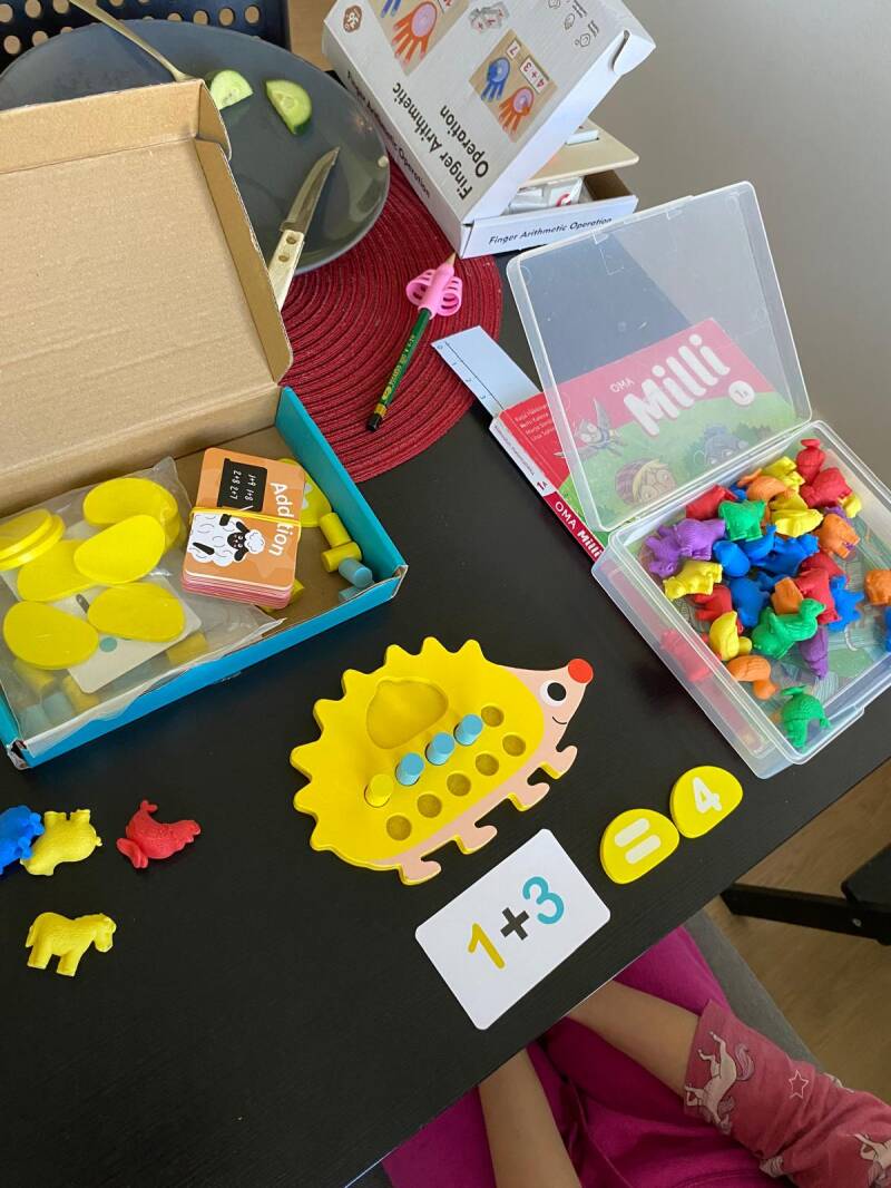 os lapsi oppii laskemaan punaisilla palikoilla, hänen tulee harjoitella myös vihreillä, puisilla, sormilla laskemista ja lopulta kirjan harjoituksilla. Jos tervehtiminen onnistuu ovella, sitä harjoitellaan myös puistossa, kaupassa ja vaikka videoyhteydessä. -